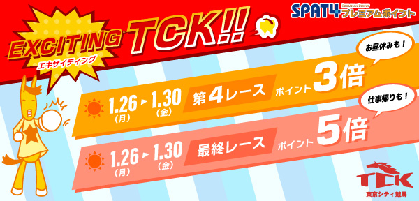 【対象レース】 1月26日(月)~1月30日(金) 【第4レース】はポイント3倍! 【最終レース】はポイント5倍!