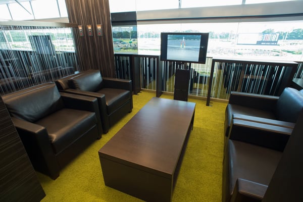 1階にはフードコートや、馬場の近くまでせり出し、大迫力のレースが楽しめるエキサイティングシート(屋外一般席 1,282席)、2階には空調が完備され一年中快適な環境でレースをご覧いただけるヴィクトリーシート(屋内指定席 272席)や売店などを設置。