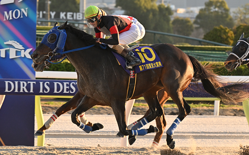 入線した馬について、「その走行妨害がなければ被害馬が加害馬に先着していた」と裁決委員が判断した場合、加害馬は被害馬の後ろに降着となります。