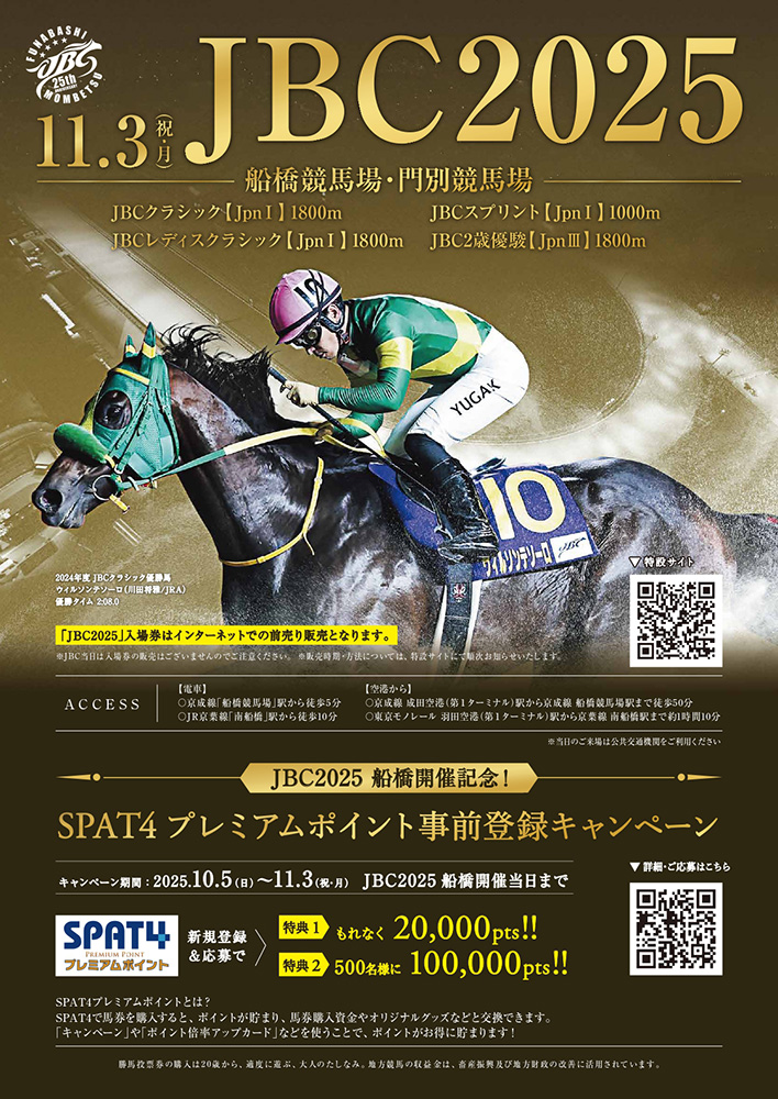 11月3日(月祝)に船橋競馬場で開催される『JBC2025』のPRイベントを10月21日(火)~23日(木)の3日間実施いたします。360度映像でリニューアルした船橋競馬場の臨場感を味わえる「新ハートビートVR」の体験ブースを設置するほか、豪華賞品が当たる「ハートビートVR X投稿キャンペーン」や、『JBC2025』開催を告知するチラシの配布も行います。