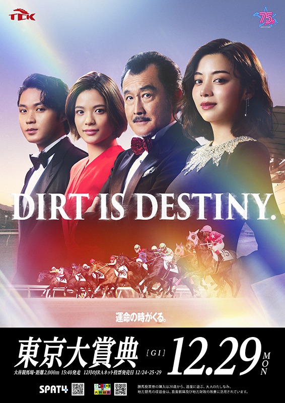 東京シティ競馬(TCK)では、年間イメージキャラクターを務める池田エライザさんと、今年のCMで共演してきた清塚信也さん、阿部詩さん、吉田鋼太郎さん、磯村勇斗さんが出演する新CM「DIRT IS DESTINY.」篇を11月28日(金)より公式 YouTubeで公開し、地上波テレビ等での放映を12月7日(日)より開始します。