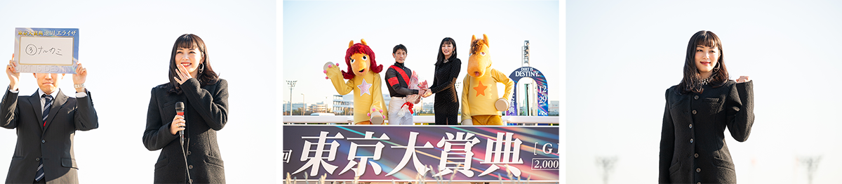 東京シティ競馬(TCK)では、本日12月29日(月)に、ダート競馬の総決算「第71回 東京大賞典(GI)」を実施しました。今年のTCKイメージキャラクターを務める池田エライザさんが来場し、表彰式プレゼンターを務めていただいたほか、競馬中継番組の生出演やレース前にはミニトークショーも実施し、東京大賞典当日のTCKを大いに盛り上げていただきました!