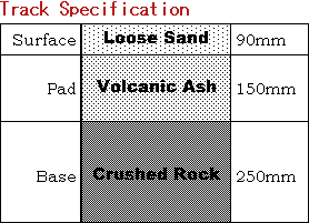 The dirt surface is made from volcanic ash called “HARUNA Dust” and cushion sand laid 9cm deep, which absorb the shock of the foot landing.